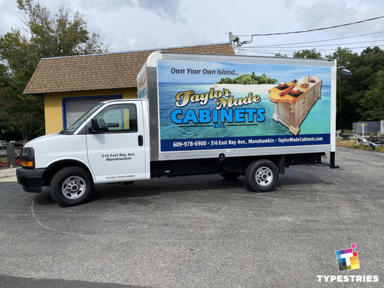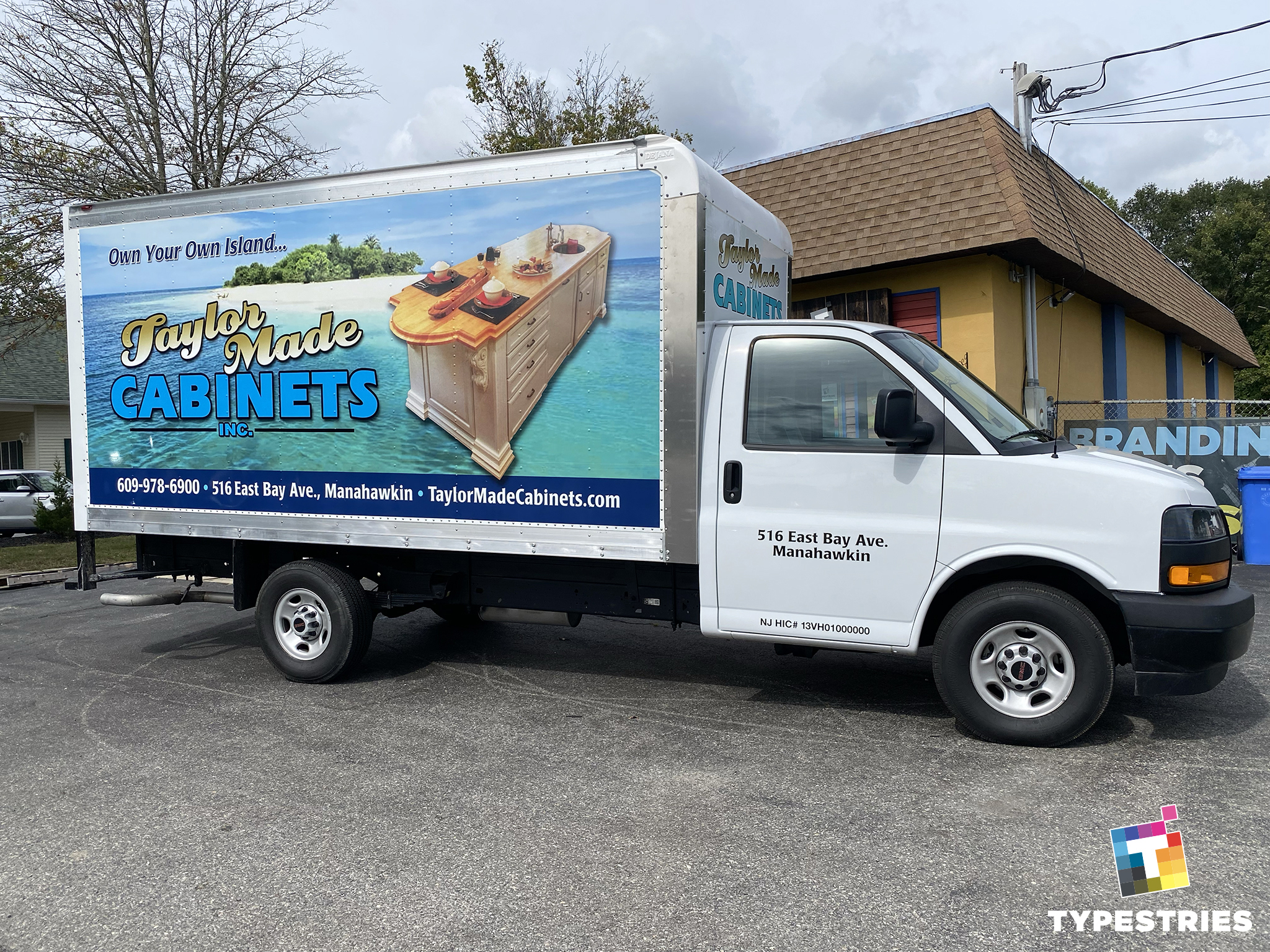 Taylor Made Cabinets is celebrating a 40th anniversary and rolling out in style! Their new box truck is wrapped in 3M Controltac vinyl with 3M 2080 gloss overlaminate for long-term outdoor wrap durability and image pop! We designed this truck to be a real head-turner and to help Taylor Made Cabinets stand out in a crowded market! We thank Taylor Made cabinets for their support of our business for the past 30 years!
